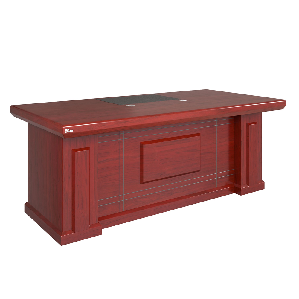 Bàn thường có tông nâu đỏ hoặc nâu vân gỗ đậm, mang phong cách nội thất lãnh đạo sang trọng và dễ phối với các loại ghế giám đốc hoặc tủ tài liệu.