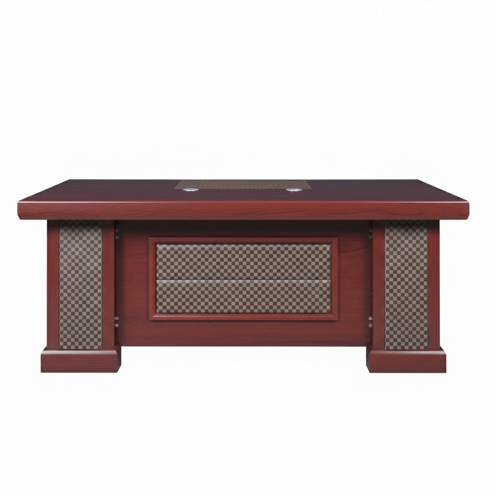 | Chất liệu, cấu tạo | Bàn lãnh đạo mặt chữ nhật, có các tấm PVC carô trang trí. |