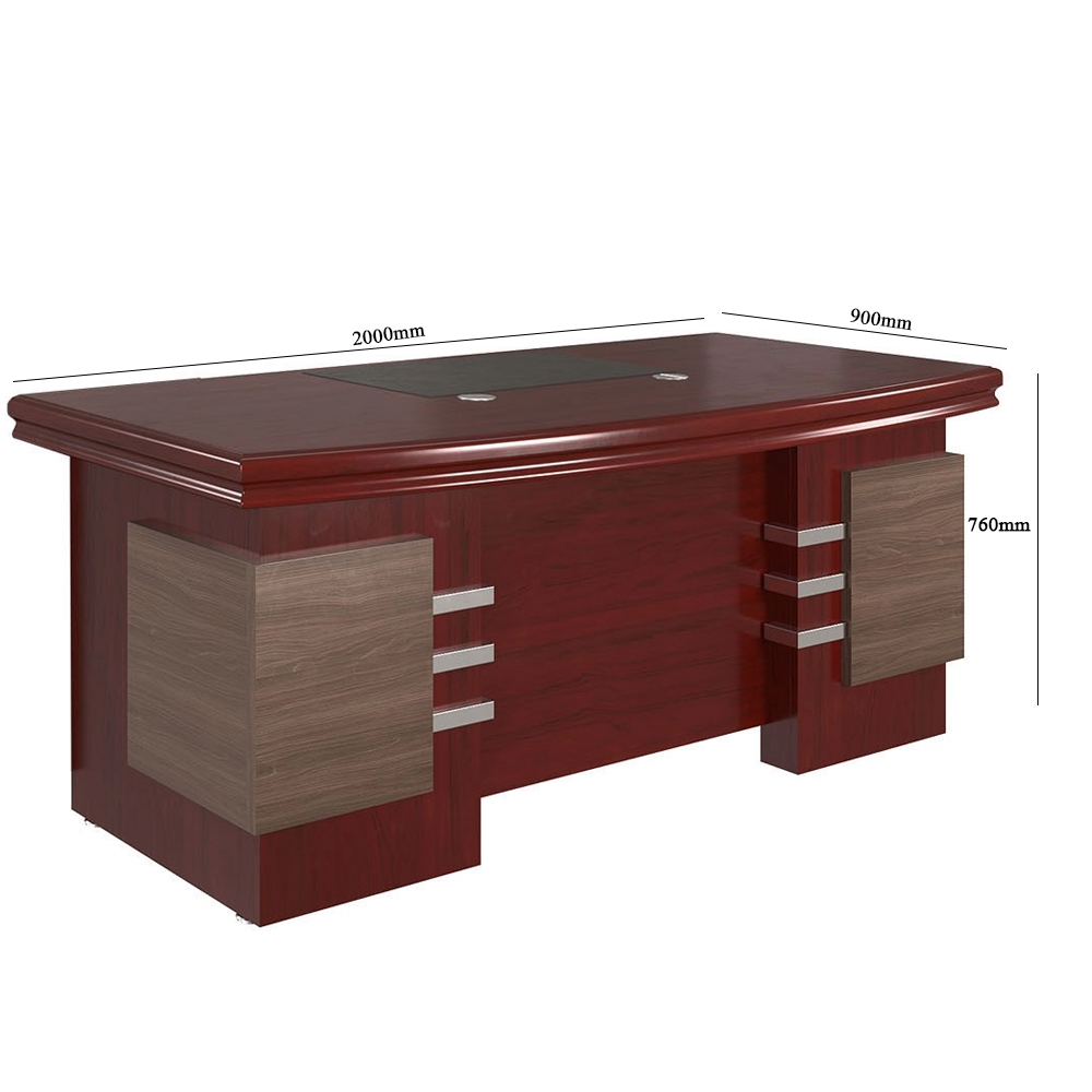 Bàn có thiết kế sang trọng và phù hợp với không gian phòng lãnh đạo hoặc phòng trưởng phòng. Kiểu dáng mặt bàn lượn cong kết hợp các chi tiết trang trí giúp sản phẩm trông chuyên nghiệp và đẳng cấp hơn so với bàn làm việc thông thường.