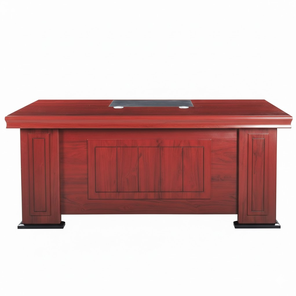 | Chất liệu, cấu tạo | Bàn lãnh đạo mặt chữ nhật, có tấm PVC trang trí. Yếm bàn ốp nổi phào gỗ hình chữ nhật. (Giá chưa bao gồm hộc, tủ phụ) |
