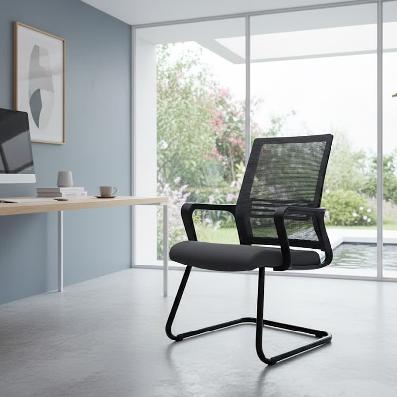 Kiểu ghế: chân quỳ cố định (không xoay, không điều chỉnh độ cao), phù hợp phòng họp/ văn phòng tiếp khách/ khu làm việc tĩnh.