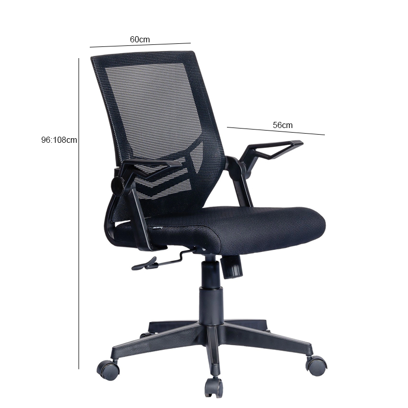 | Chất liệu | Ghế lưới nhân viên khung tựa nhựa bọc vải lưới, đệm mút xốp bọc vải, tay có thể gấp lên – xuống theo nhu cầu sử dụng. Ghế chân nhựa |