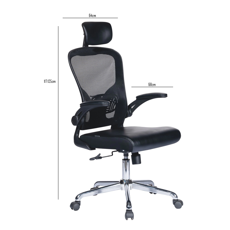 | Chất liệu | Ghế lưới lãnh đạo lưng cao, đệm bọc PVC, khung tựa nhựa bọc vải lưới. Tay có thể gấp lên – xuống khi sử dụng. Chân thép mạ |