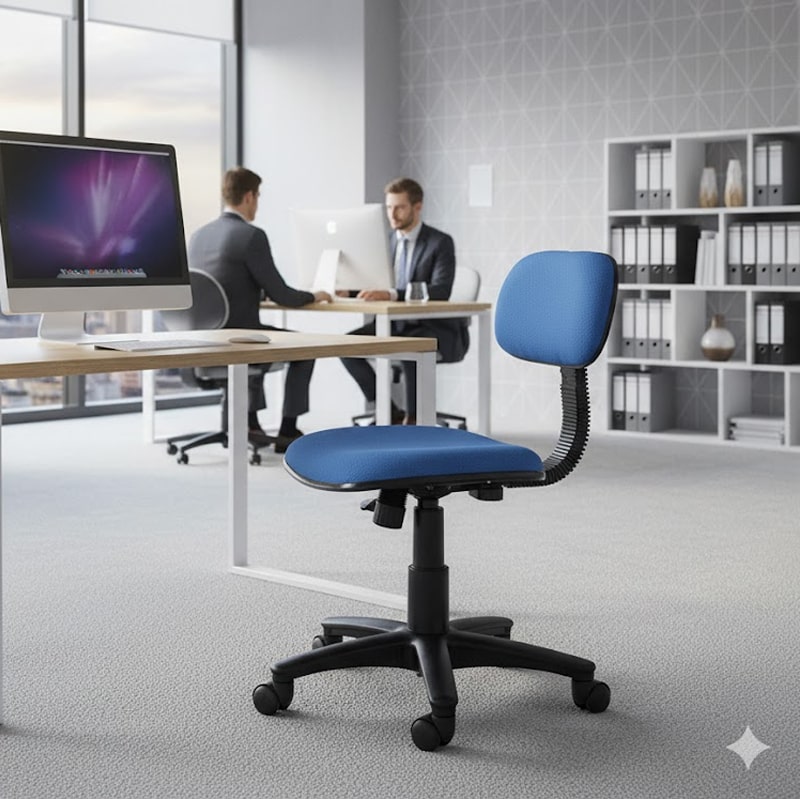 | Chất liệu | Ghế nhân viên bọc vải, chân nhựa, không tay. |