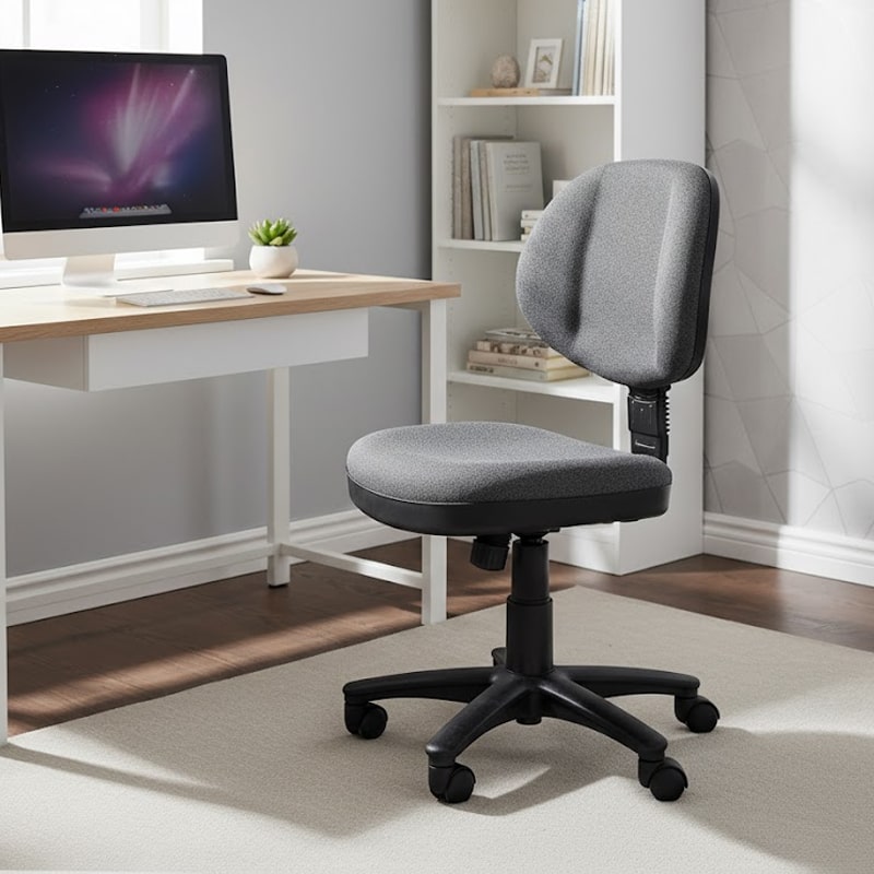Thiết kế nhỏ gọn, tối ưu không gian làm việc: Lưng thấp và không tay vịn giúp tiết kiệm diện tích, phù hợp văn phòng có bàn nhỏ.